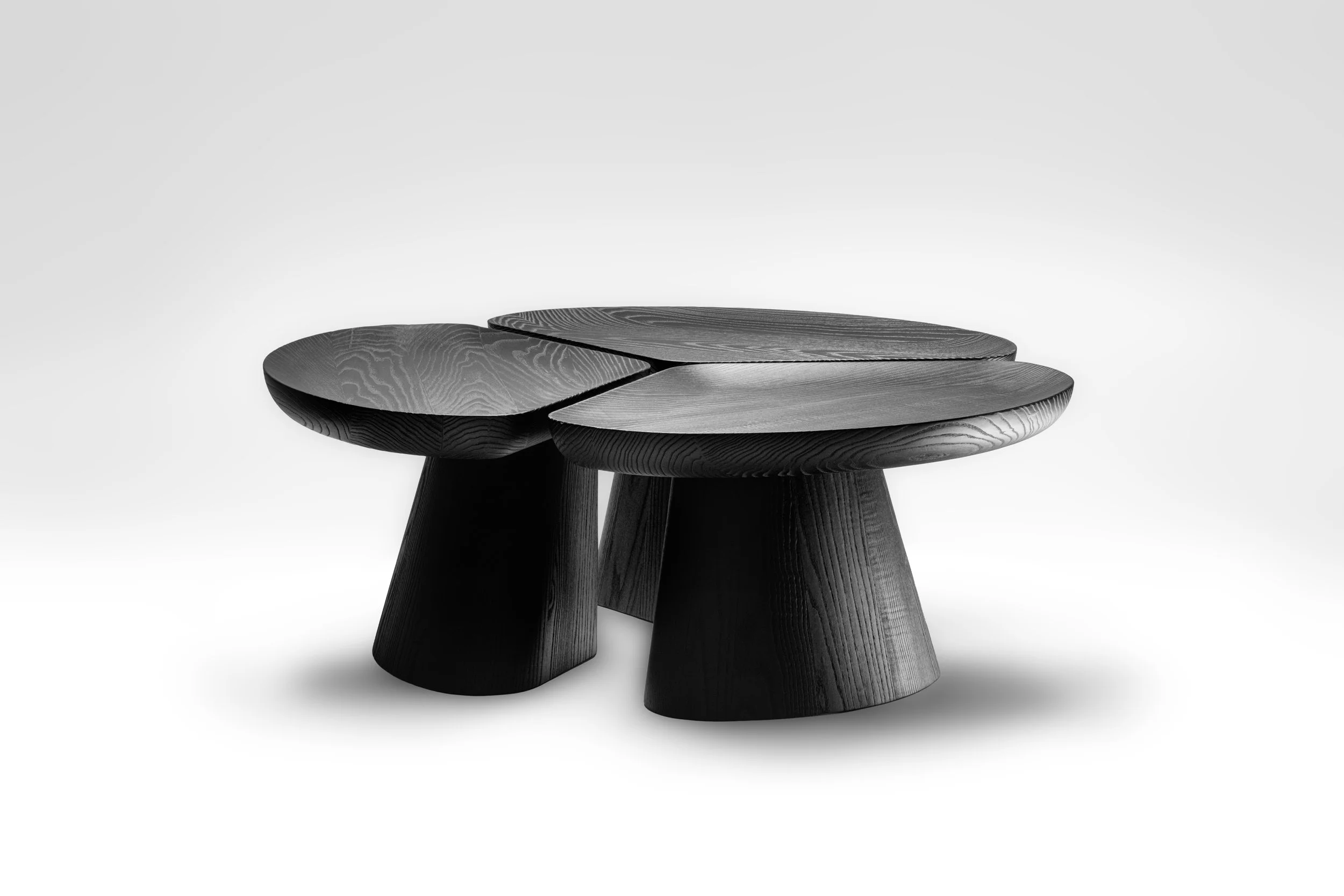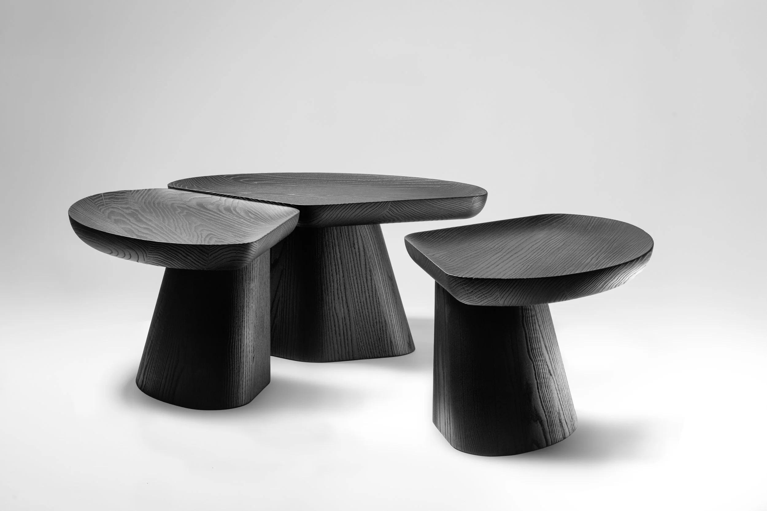 Three pieces, burnt ash with varnish finish.
